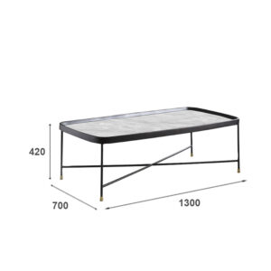 Очень элегантный журнальный столик. Изготовлен из натуральных материалов. Столешница из древесины и шпона ясеня с контрастной керамической вставкой серо-белого цвета. Подстолье на четырех устойчивых стальных ножках, с акцентными позолоченными наконечниками.